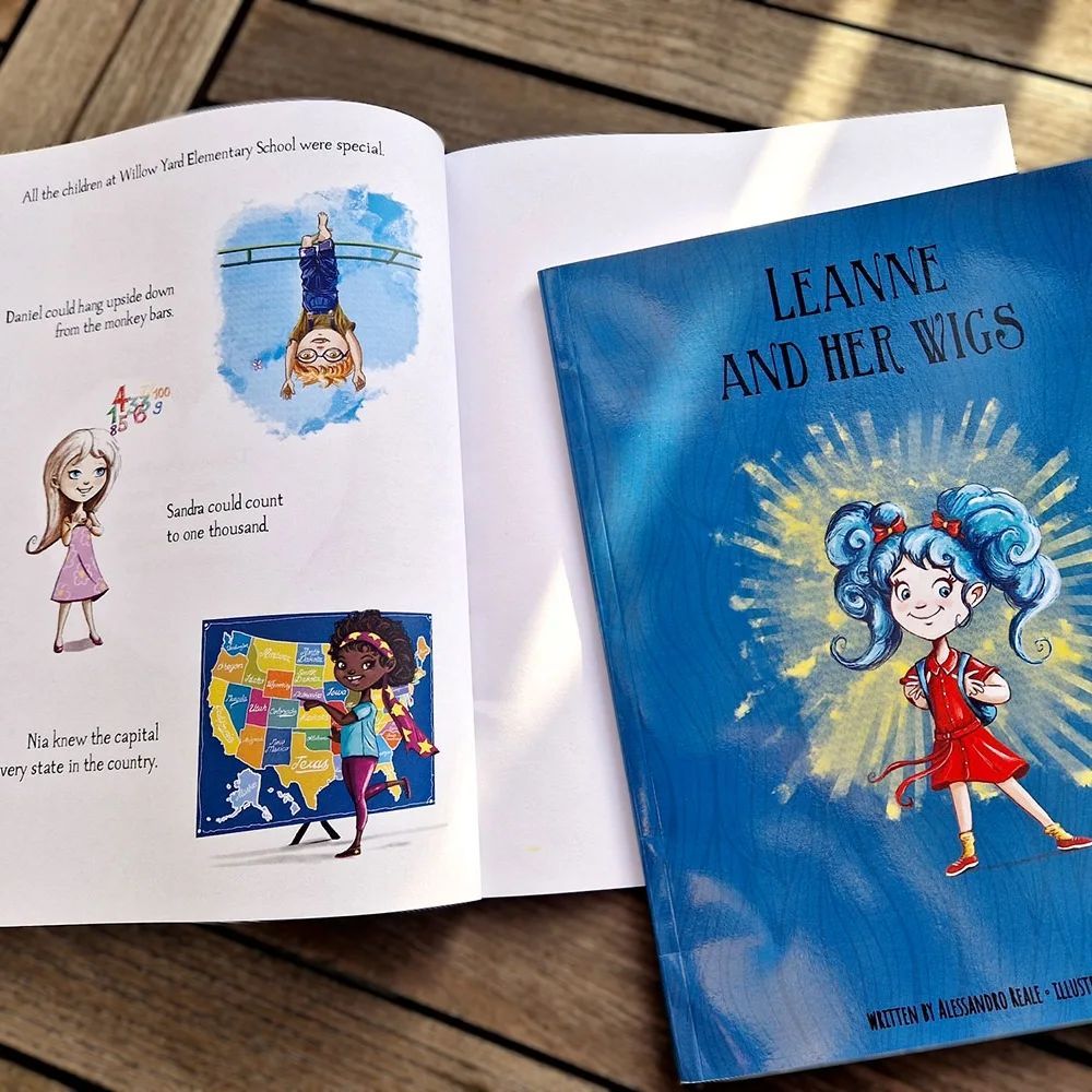 Leanne adorait porter des perruques très colorées à l’école et ses camarades de classe se réjouissaient de voir quelle perruque elle portait chaque jour. Mais ils ignoraient que sous les perruques se cachait un secret embarrassant qu'ils allaient bientôt découvrir… et Leanne va découvrir en retour que la vraie beauté vient de l’intérieur et qu’elle n’a pas à se cacher du monde. Il est disponible sous format album jeunesse classique (24 pages couleurs - Format : 21x29,7 cm) et en version numérique.