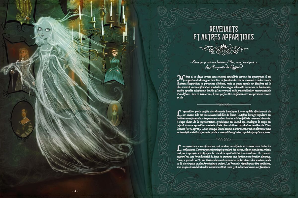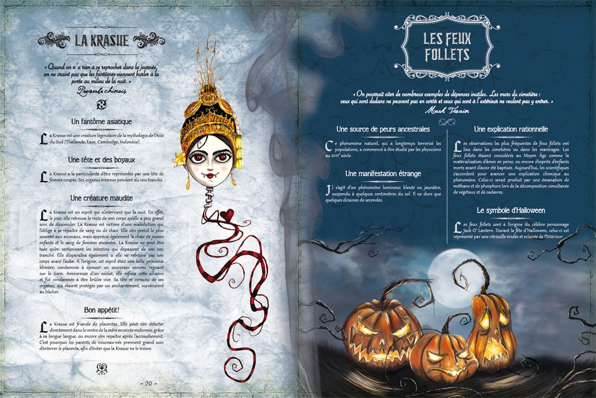 RESUME : « Quelle idée d’avoir fait une séance de spiritisme ! À présent, tout vole dans la pièce : les esprits frappeurs sont à la fête. Une belle revenante vous tend la main. Vous êtes sur le point d’entrer dans la danse... Mais quelqu’un hurle dans le jardin : c’est peut-être une banshee, sous le clair de lune ? À moins que ce ne soit le dîner d’un vampire qui se rebiffe. Chasser les humains, ce n’est pas de tout repos pour les créatures de la nuit. Cela vous fait penser que lorsque vous rentrerez, il vous faudra contourner le cimetière : une charmante goule y réside. Et elle a faim... De nombreuses créatures du monde entier sont revenues de l’Au-delà pour hanter cette encyclopédie. De quoi frissonner à tout âge ! »