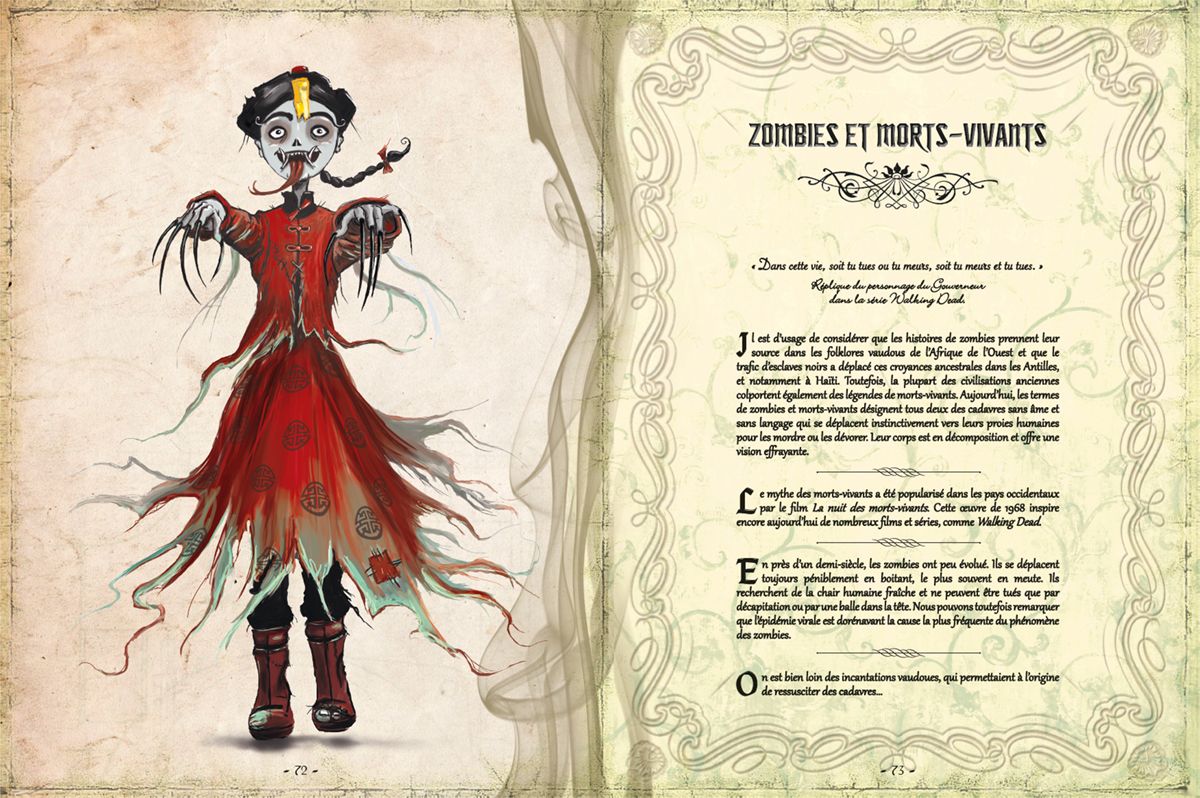 Couverture et illustrations réalisées pour cette encyclopédie jeunesse qui fait le tour du monde des lieux hantés et des créatures d'outres tombes, zombies, vampires et autres goules.