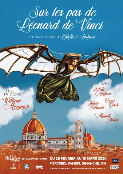 Illustrations réalisés pour l'affiche et les décors du spectacle Sur les pas de Léonard produit par le Théâtre de L’Étreinte & par la Compagnie Coïncidences Vocales. Spectacle musical joué à l’Espace Paris Plaine. Ecrit par Estelle Andrea. Mise en scène William Mesguich.