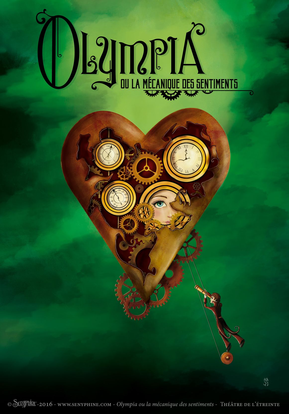 Illustration réalisée pour l'affiche du spectacle Olympia ou la mécanique des sentiments produit par le Théâtre de L’Étreinte & par la Compagnie Coincidences Vocales. Spectacle musical steampunk joué lors du Festival d'Avignon 2017 et sur Paris. Ecrit par Vanessa Callico. Mise en scène William Mesguich.