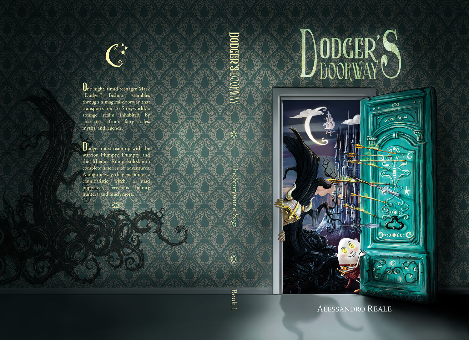 One night, timid teenager Mark “Dodger” Bishop stumbles through a magical doorway that transports him to Storyworld, a strange realm inhabited by characters from fairy tales, myths, and legends. Dodger must team up with the warrior Humpty Dumpty and the alchemist Rumpelstiltskin to complete a series of adventures. Along the way, they encounter a cannibalistic witch, a mad puppeteer, ferocious bounty hunters, and much more. *Note: There is some minor language and violence in this book.*