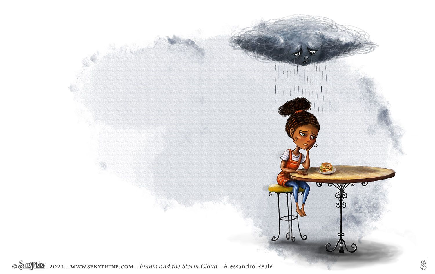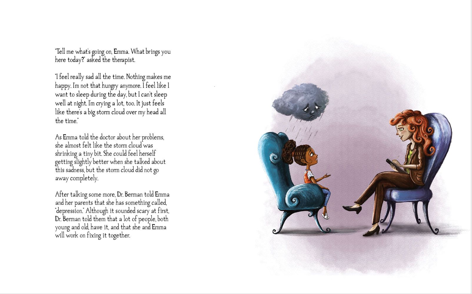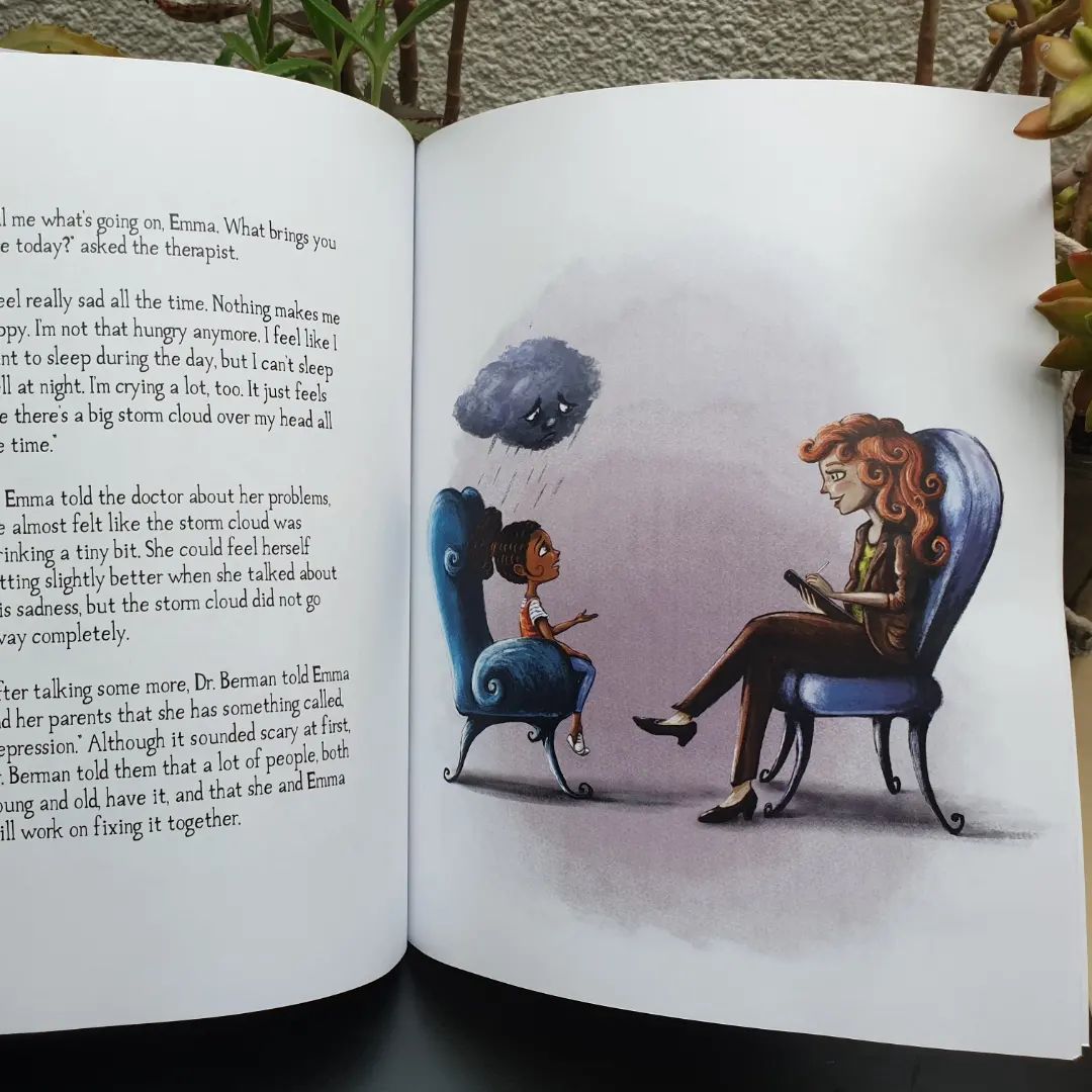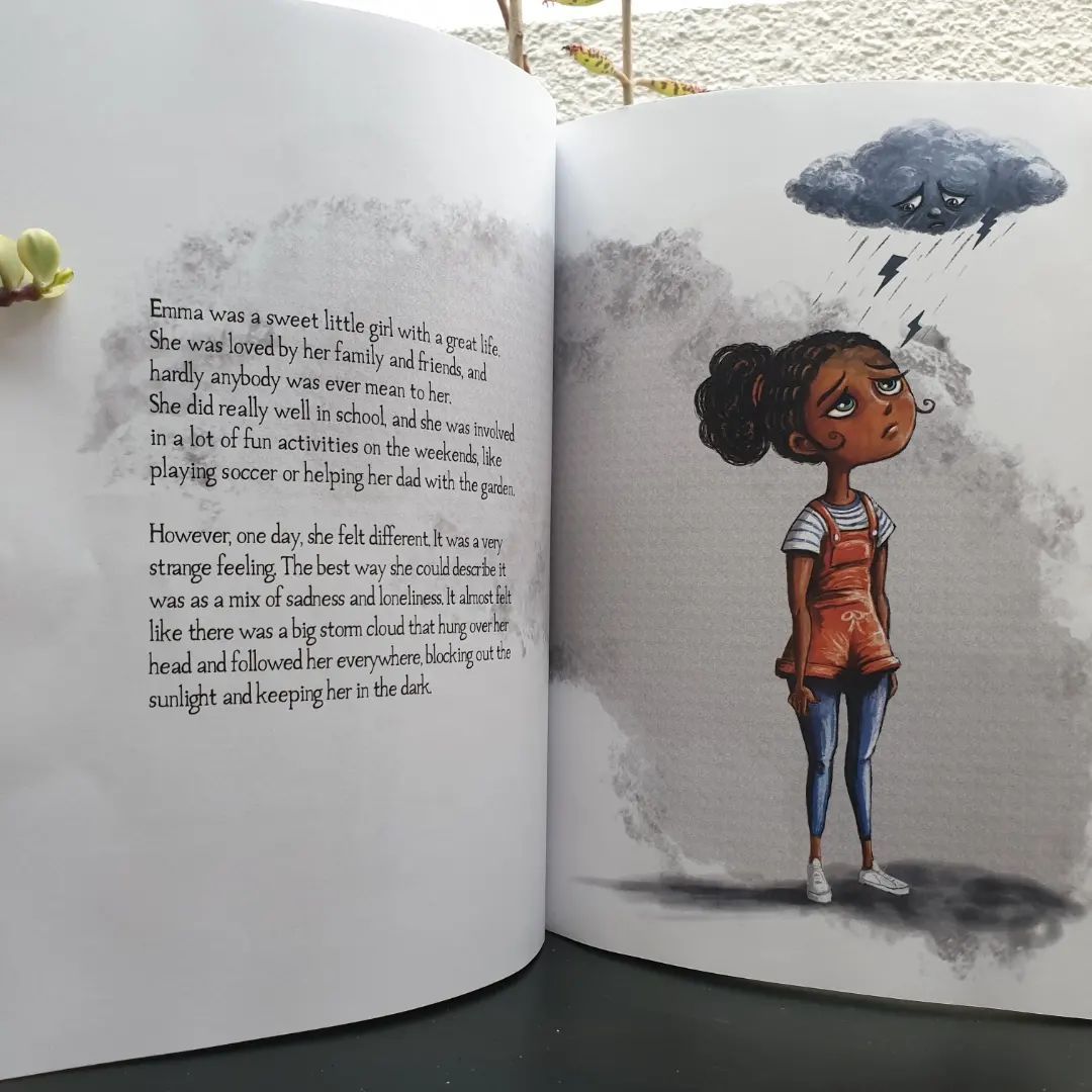 Emma se sent triste et seule. Elle ne ressent aucune joie à jouer dehors avec ses amis ou à passer du temps avec sa famille. Sa tristesse la suis partout sous la forme d'un gros nuage noir au-dessus de sa tête et il affecte son moral jour après jour. Emma va apprendre qu'elle souffre de "Dépression". Heurereusement, avec le soutien de sa famille elle va trouver un moyen de faire face à la dépression et empêcher le nuage de devenir trop gros.