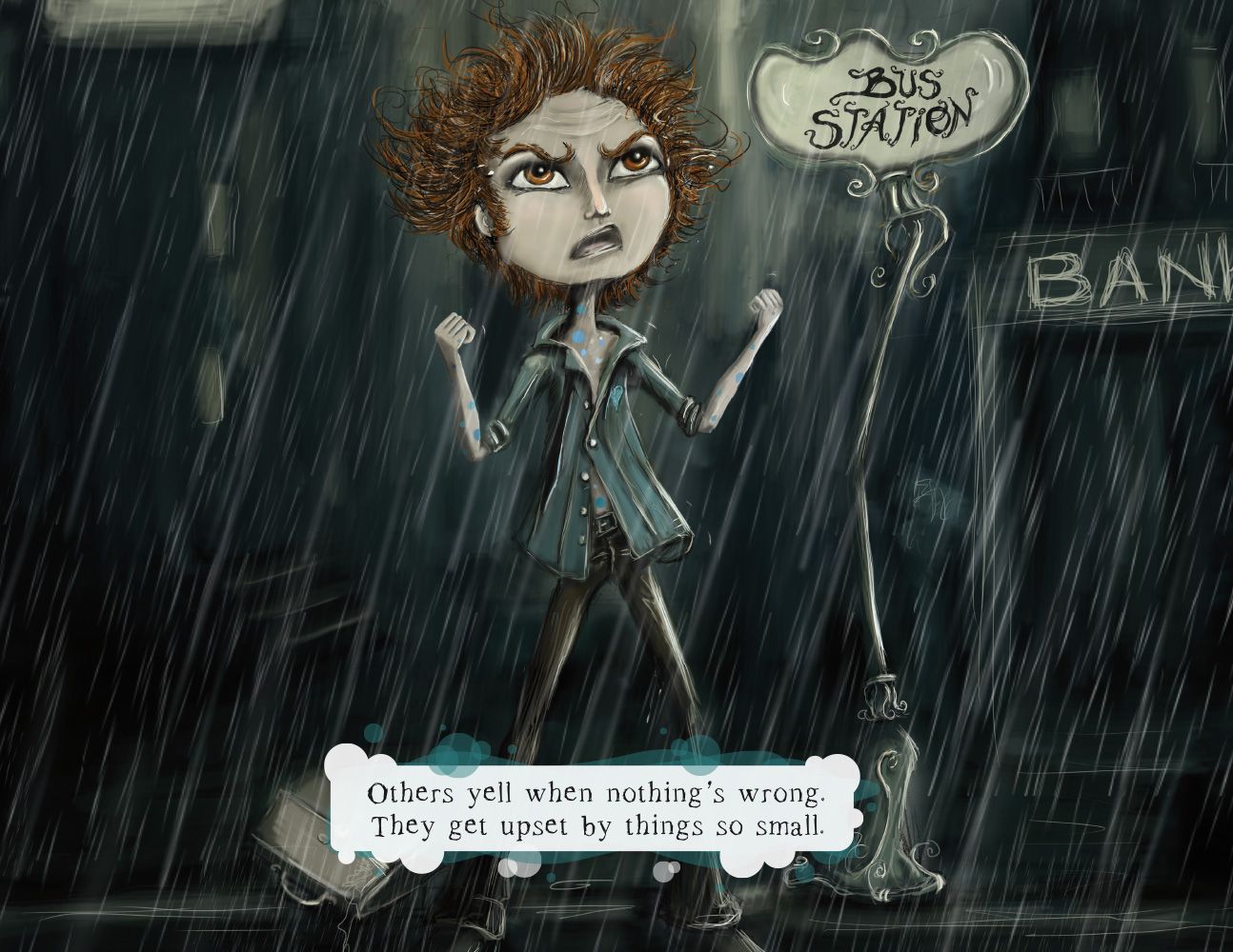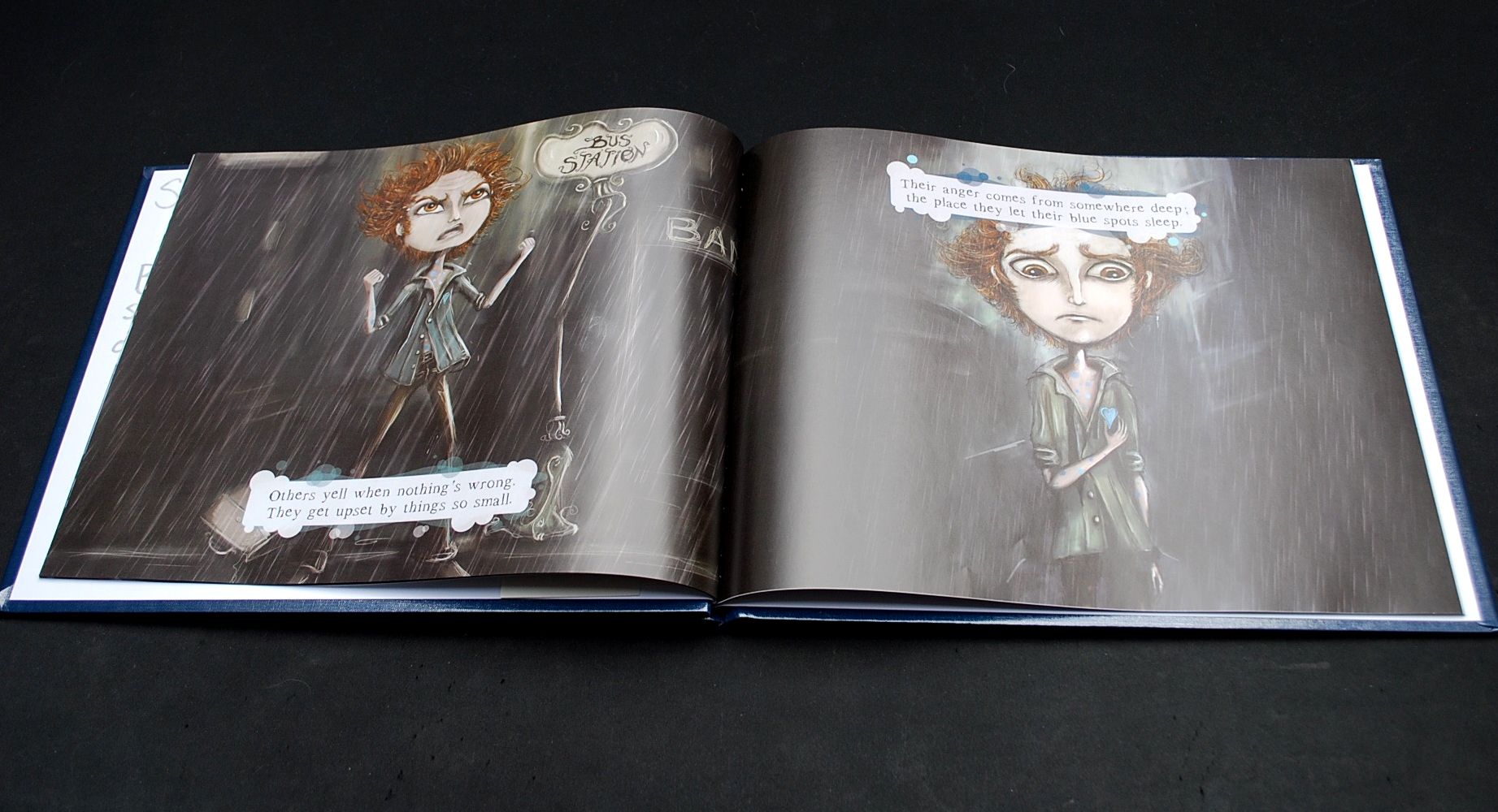 Résumé : Cette histoire parle des gens qui sont accablés par la tristesse. L'histoire se déroule dans une ville où les cicatrices émotionnelles apparaissent sous forme de pois bleus sur les habitants. Dans la réalité, la tristesse n'est pas visibles aux yeux des autres; ici les pois symbolisent toutes les peines qu'une personne rencontre dans sa vie. L'auteure à écrit ce livre pour donner de l'espoir dans des temps difficiles et le courage d'avancer vers des jours plus heureux et d'en ressortir plus fort.