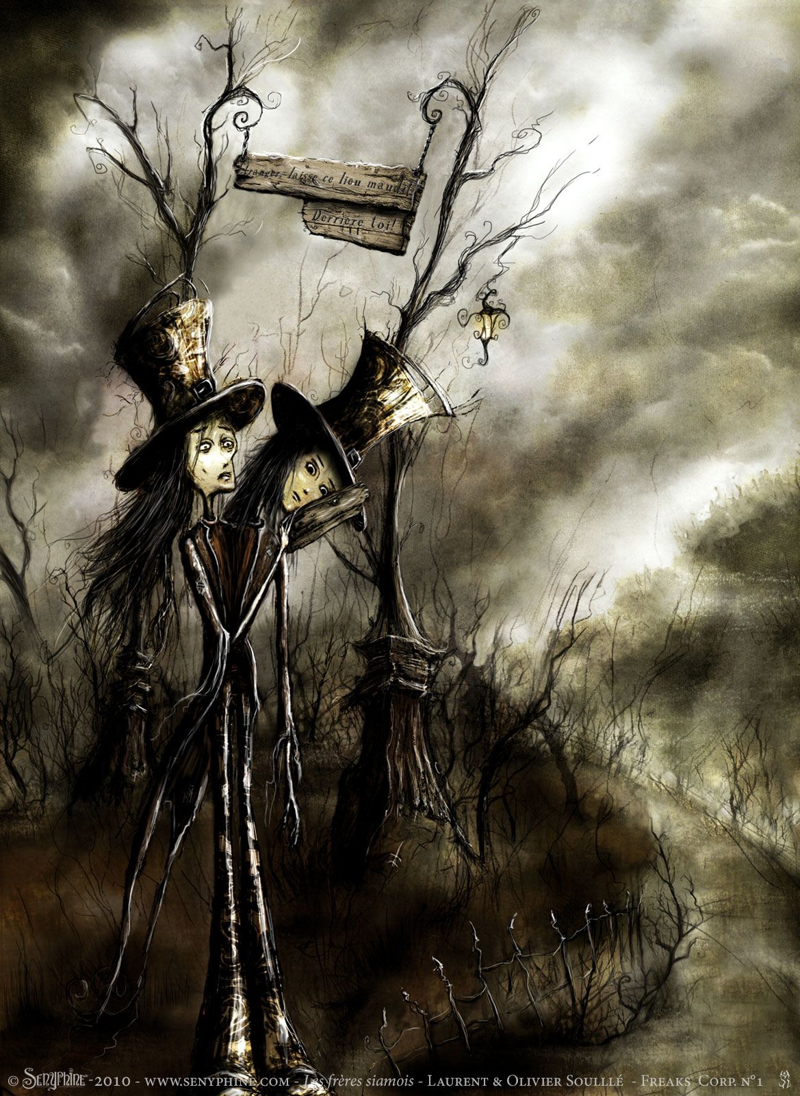Illustrations réalisées pour la nouvelle Les Frères Siamois écrite par Laurent et Olivier Souillé parue dans le N°3 de la revue de l'Etrange FREAKS CORPs.